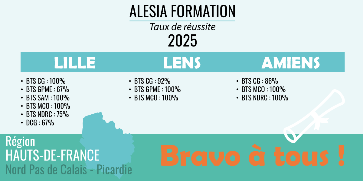 Les taux de réussite d'Alésia Lille, Lens et Amiens